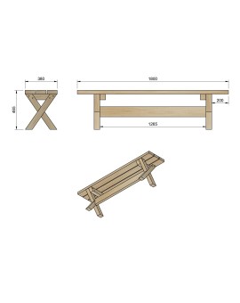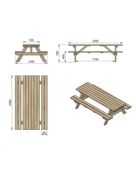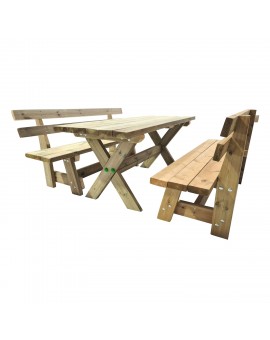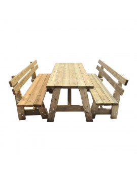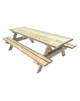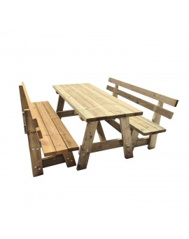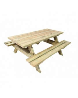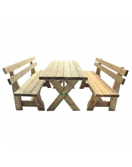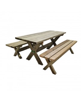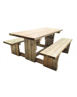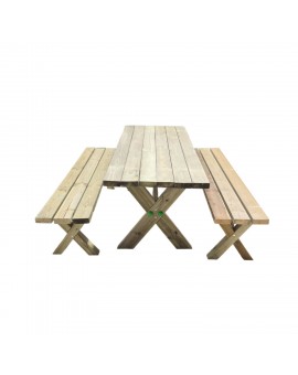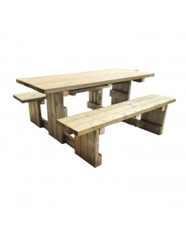 Picnic table made of high quality pine wood treated with autoclave level IV, suitable for being outdoors and in the open air. It is made of 45 mm thick wood (120x45 mm) and has double reinforcement at the base of the seats, a well-thought-out...
