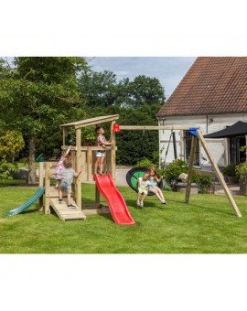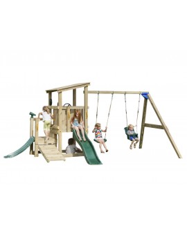 This tower is the smallest version and has been designed for children between 3-6 years of age. Approved for private use. It includes: - Cascade Tower with roof - Slide for height of 0.90 cm - Double swing structure with two plastic seats -...