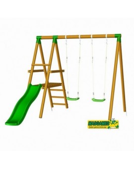 Wooden playground with double swing and platform with slide. The MASGAMES LIGNUM playground consists of a double XYLO swing and a platform with a MOLA slide. A strong, tall and safe playground with the best value for money. The MASGAMES LIGNUM...