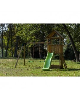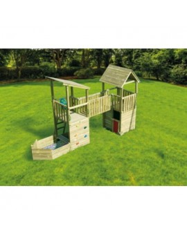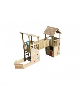 Fun elevated house with a slide ramp, at the base of the tower there is a sandbox (without sand) so that children can play. Made of resistant square wood and treated for the outside. The Tibidabo playground includes all the woods to set up...