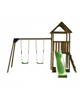 Todo el conjunto incluye columpio doble apoyado para la torre de 1,5 m. de altura con 2 asientos de plástico y un @Bridge para conectar las dos torres.