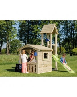 Con este parque infantil los niños tendrán doble diversión subiendo a la torre y deslizándose por el tobogán o jugando dentro de la casita que tiene una puerta practicable y una ventana fija. Fabricada en madera cuadrada resistente y tratada...