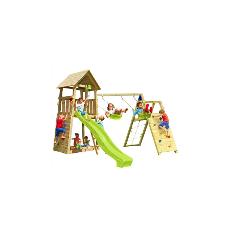 The KIOSK tower is a tower that offers very good value for money, this combination includes the @Challenger that incorporates a rope ladder, a climbing ramp and a double swing. This playpen is made of square wood and has an excellent finish....