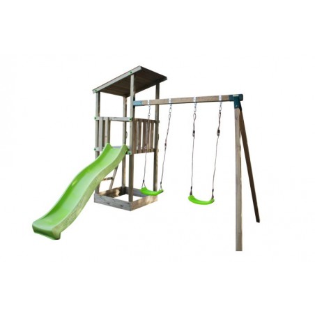 El conjunto Torre Belvedere con columpio individual, es un completo parque infantil fabricado en madera cuadrada, que ofrece una relación calidad precio excelente. El conjunto incluye: - Torre Belvedere XL de 1,5 m. de altura de la plataforma -...