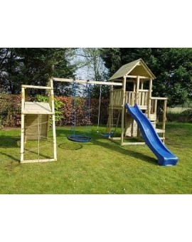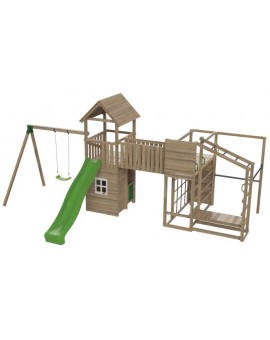 Spectacular tower with several integrated elements, it is so large that children will never get bored. It has a large platform with a balcony on the side, and it is connected to a little house to be able to hide. Underneath, there is a huge...