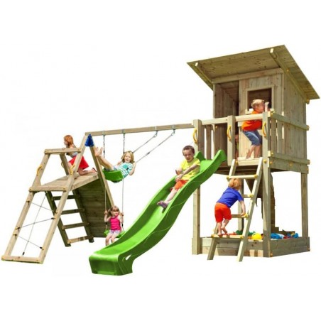 Spectacular tower with several integrated elements, it is so large that children will never get bored. It has a large platform with a balcony on the side, and it is connected to a little house to be able to hide. Underneath, there is a huge...