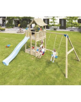 This playground is made of wood treated for the outdoors (autoclave level IV) from renewable European forests.
