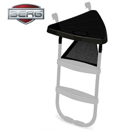 La plataforma BERG Ladder + BERG Ladder hace que subir o bajar del trampolín sea más seguro, pero también es multifuncional porque los zapatos se pueden almacenar fácilmente en la pequeña red que hay debajo la plataforma.