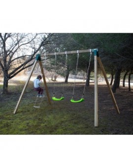 This model incorporates 2 flat seats so that 2 children can swing at the same time and 1 seat "face to face" with which 2 children can swing at the same time. It is made of very resistant square wood. - 2 plastic seats and ropes. - 1 double...