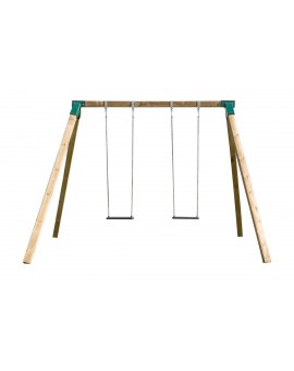 The classic double swing made of square wood, with excellent value for money. The AKINA swing combines a plastic seat with a "nest" seat. - 1 plastic seats and ropes. - 1 "nest" seat - Metal joining pieces, anchors and screws. -...