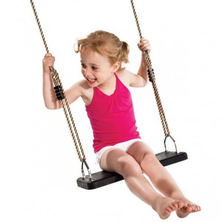 The seat is made of plastic and ropes. The ropes end in some rings so that they can be attached to the structure of the swing without problems.