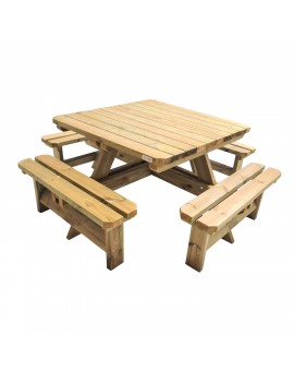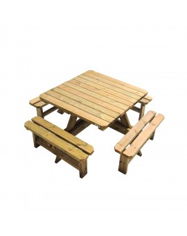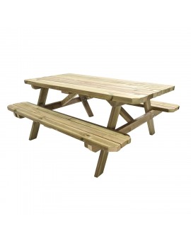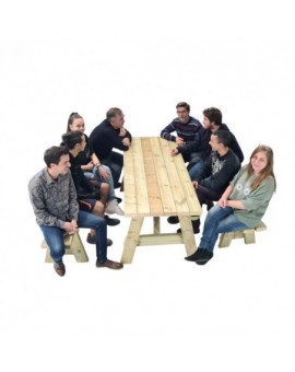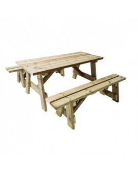Picnic table made of high quality pine wood treated with autoclave level IV, suitable for being outdoors and in the open air. It is made of 45 mm thick wood (120x45 mm) and has double reinforcement at the base of the seats, a well-thought-out...