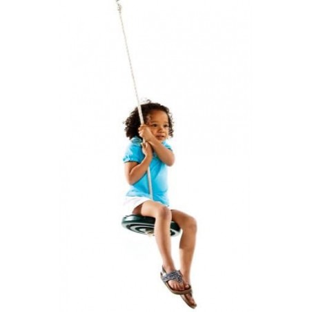 Il sedile è in plastica e corde. Le corde terminano in anelli in modo che possano essere attaccate alla struttura dell'altalena senza problemi.